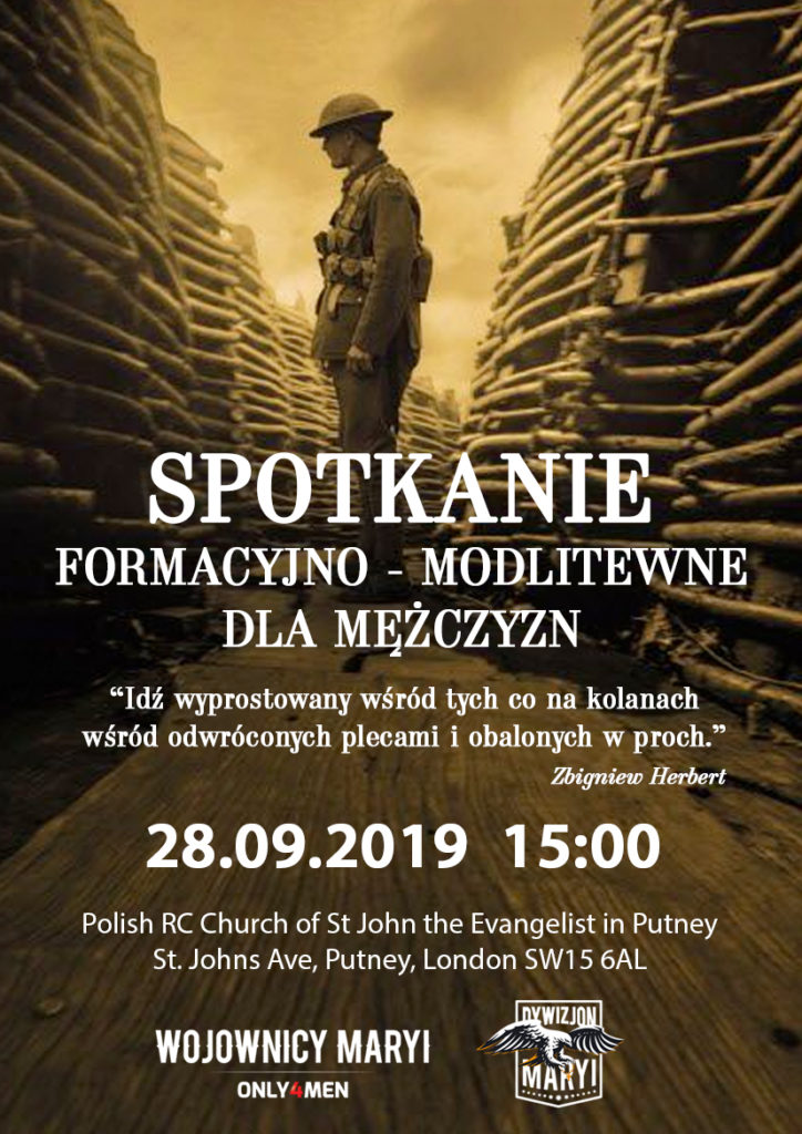Drodzy Bracia i siostry, w dzisiejszą sobotę o godzinie 15:00 odbędzie się pierwsze spotkanie formacyjno – modlitewne dla mężczyzn z Londynu i okolic.
